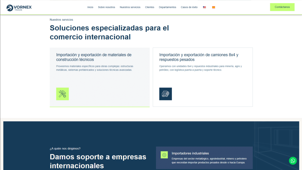 Una plataforma digital sólida y profesional que refuerza la autoridad global de Vornex Trade, mejora la experiencia de usuario y facilita la generación de oportunidades comerciales cualificadas en sectores industriales y logísticos. La estructura y el diseño transmiten confianza, claridad y capacidad operativa para clientes y partners internacionales.